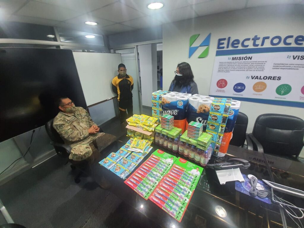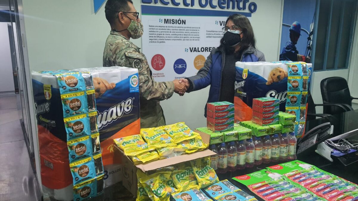 Como parte de las acciones cívicas programadas en la agenda de atención para el distrito de Vizcatán del Ene, colaboradores de la empresa Electrocentro del Grupo Distriluz realizaron un aporte solidario para la compra de útiles de aseo que fueron entregados a los pobladores más necesitados de esta localidad por el personal del Ejército Peruano.