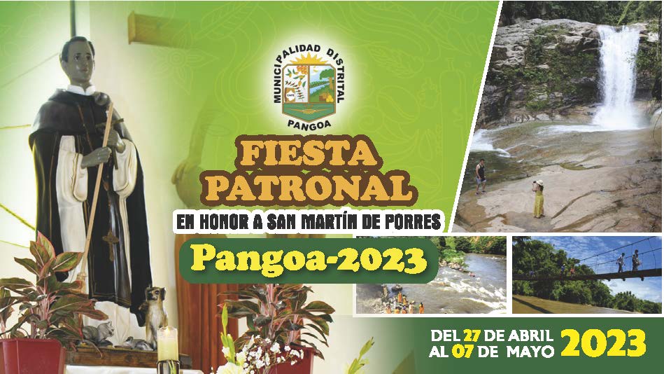 Este año, con la gestión del Lic. Oscar Villazana Rojas, alcalde distrital de Pangoa se realizarán actividades en el marco de su fiesta patronal, para atraer la visita de turistas a esta parte de la selva central que posee atractivos turísticos como recursos naturales y cultura viva. Posee gran cantidad de cataratas, cascadas, ríos caudalosos, lagunas, bosques y variedad de flora y fauna. A su vez, es el hogar de la etnia ashaninka y de la etnia nomatsigenga, única a nivel internacional; las comunidades nativas nomatsigengas aún conservan su vivencia y cultura ancestral para un turismo vivencial. Como parte de su historia se tiene numerosos petroglifos dentro del distrito que aún esta en estudios para ver su significado y el porqué de su ubicación estratégica.